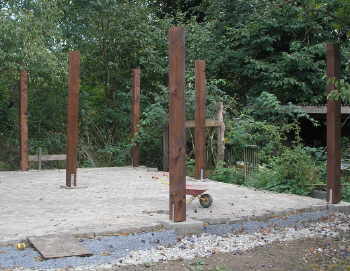 Carport , Abstellplätze, Stahlkonstruktion. Baumaterial vereint natürliche Optik mit klimaregulierenden Eigenschaften. Eine auffrischende, pflegende Farbbehandlung .