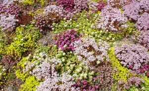 Die trockenheitsverträglichen Stauden der Pflanzengemeinschaft bilden von Frühjahr bis Herbst immer wieder Blütenakzente auf dem Gründach. Die Bedarfsmenge je Quadratmeter variiert in Abhängigkeit der Dachneigung. Lieferbare Arten können dem Produktdatenblatt.