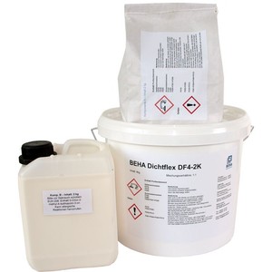 Flexibilisierter 2K- Dichtungsmörtel. Mineralische, starre Flächenabdichtung von Behältern, erdüberdeckten Bauteilen, Kläranlagen, Rohrleitungen, Heizkanäle, usw. Nicht für den Trinkwasserbereich geeignet.